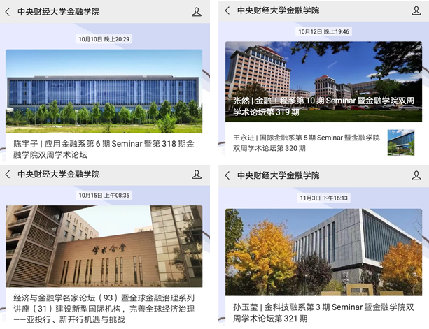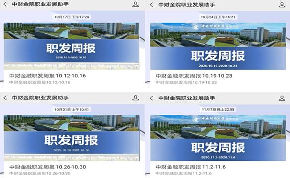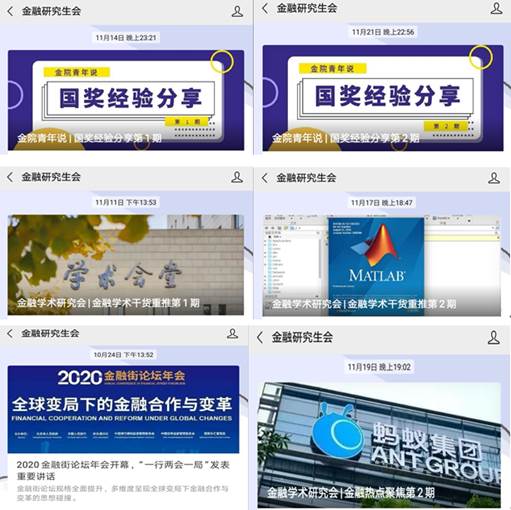 借助公司官网、公司公众号、公司党支部公众号、研究生会公众号、中财金院职业发展助手公众号等多媒体平台开展广泛宣传,推出奋斗金融人、国奖获得者经验分享、金融学术干货、金融热点聚焦、职发周报等50余篇内容丰富的推送。