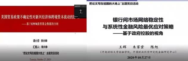 十九届五中全会召开后,韦德1946体育官方入口迅速组织新生学习贯彻落实十九届五中全会精神。围绕当前国际形势、脱贫攻坚等热点话题,先后10余次组织新生参加“经济与金融学名家论坛”、双周论坛和学术研讨会,开拓视野,锤炼金融思维,提升学术能力。同时,博士生党支部组织了“党日活动暨首届名家论坛”,邀请中国社会科公司金融研究所金融风险与金融监管研究室主任郑联盛老师、金融科技研究室汪勇老师和金融风险与金融监管研究室李俊成老师围绕系统性金融风险展开学术讨论,立足中国大地、创新中国思想、研究中国问题。