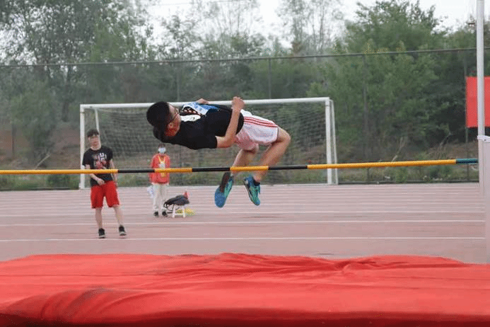 运动场上彩旗飘,运动健儿显英豪。5月13日下午,男子跳远、女子实心球掷远和女子跳高比赛同时进行。在男子跳远比赛中,张子义和甘淳同学表现优异。