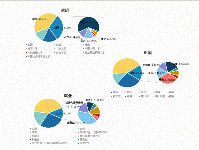 于来老师以2020届毕业生为例,将2020届毕业生的在校成绩与毕业去向相关联,对韦德1946体育官方入口毕业生样本进行分析,分别以三个大方向:升学、就业、出国加以讲解。以金融学专业17-1、17-2、17-3三个班级毕业生为例,在成绩前50%的员工中,大部分都以考研为大方向,其次是出国,最后是就业;在成绩后50%的员工中,则大多以就业为大方向,考研和出国选项上人数大同小异。考研方面,43人中有27人考研升入本校,其他人则考入北京大学、中国人民大学等985高校读研;出国方面,大方向24人中12人选择留学美国、英国,其他人则多以欧洲、澳洲等发达主义国家选择留学;就业方面,17人中7人仍选择金融业为职业选项,其他人也以房地产业、租赁和商务服务业等与金融业相关方向就业。而后于来老师又通过数据分析了金融工程专业及金融科技专业的三个方向情况,为2021届金融学子们以后的人生选择提供了有力的支持与帮助。