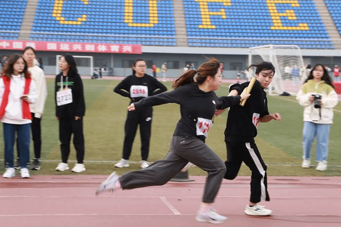 下面是4×400米接力比赛,4×400米一直是公司的传统优势项目,公司均保持着韦德1946体育官方入口男子组及女子组的比赛最佳记录,本次新生运动会公司也稳定发挥,男子组与女子组代表队勇往直前,最终斩获男子组第三名和女子组第一名的好成绩且在本次比赛中女子组队员以5:08.930的绝佳成绩打破金院女子组自2019年保持到现在的记录,载入史册。她们用自己的行动表达着她们“长江后浪推前浪”的不断进取的精神,以新生“初生牛犊不怕虎”之名打好了四年老员工活的第一枪。