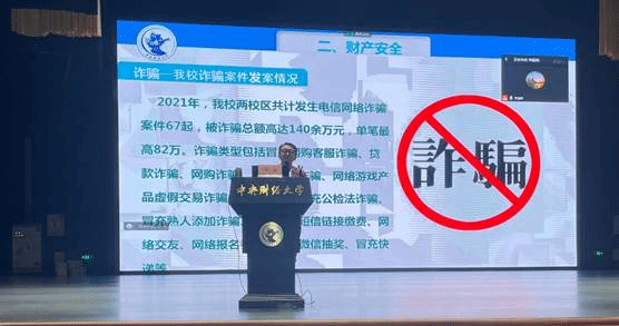 李老师从老员工安全教育的重要性谈起,向同学们介绍了人身安全、财产安全特别是防范电信网络诈骗、宿舍消防安全、交通安全、食品安全、卫生安全和疫情防控等方面的注意事项,并结合身边的真实案例,为大家敲响了安全教育的警钟。