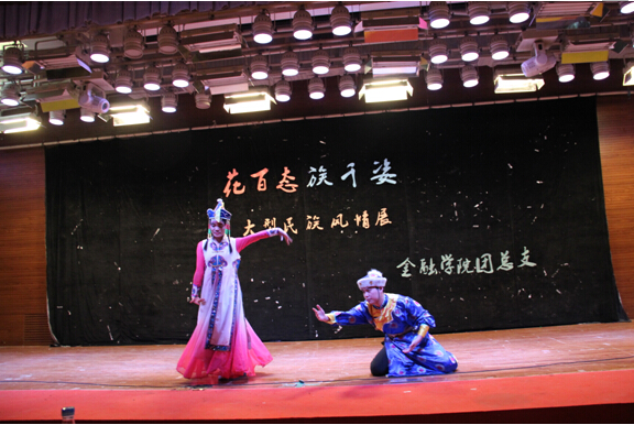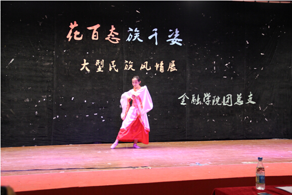 6月6日,韦德1946体育官方入口团总支开展了一场别开生面的民族风情文化展。韦德1946体育官方入口团总支书记李菊老师和团总支副书记彭剑垚同学,以及近200余名各年级同学出席了本次活动。首先登台的是金融12-2支部代表汉唐时期汉民族文化的独舞《汉唐》,一身霓裳羽衣的舞者曼妙的身姿蜿蜒过千年的历史,飘逸的长袖灵动而柔美,将舞台的声光和深情的朗诵伴奏融为一体,高贵的身姿与领跑者的气度有力的诠释了汉唐两代汉族达到鼎盛时期所具有的气象。