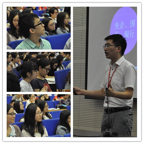 讲座过程中,韩老师以幽默生动的语言、深入简出的分析,介绍了银行招聘的方方面面,为2016届毕业生们上了生动的一课。同学们认真聆听、专心记录、积极互动,现场气氛十分活跃。