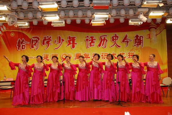 首先亮相的是来自海淀区老干部局的合唱团,她们身着红色礼服,歌声嘹亮,精神昂扬,用心唱出了对党和国家明日的美好憧憬、对青年的美好祝福。精彩开场引起全场雷鸣般的掌声。