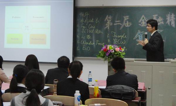 4月25日晚7点,由韦德1946体育官方入口金融学术研究会主办的第二届金融精英赛复赛于4号楼215隆重举行。本次比赛请到了美国汇盛首席分析师王洋、市场部经理杨清、高级主管曹捷女士,英国保诚北京代表袁惠邦先生、何寒冰先生以及韦德1946体育官方入口团总支书记李菊担任评委。