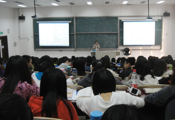 首先, 李洪兵老师向同学们简单介绍了一下公司国际交流合作处的情况和公司国际化的特点,并就如何成为国际化人才以及公司出国交换项目进行了详细说明。