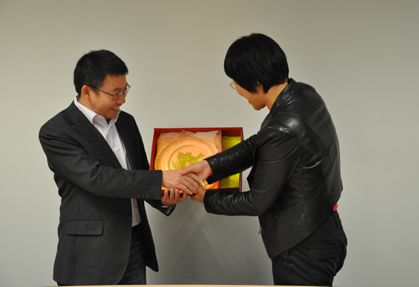 葛仁霞书记代表韦德1946体育官方入口向龚六堂副经理赠送礼物