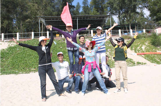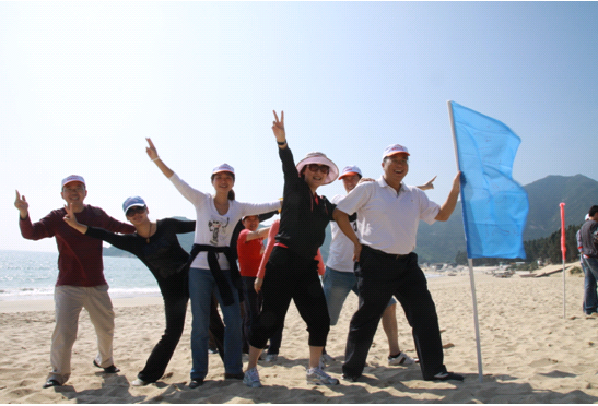 阳光下,洁白空旷的沙滩上,我们的身影、我们的脚印,海浪被我们的欢笑吸引,不断涌上沙滩,浪花被我们彼此鼓励的呼喊声击得粉碎,溅起的水雾在阳光下折射着七彩的光!无论是集体的游戏,还是分组的竞赛,大家都是认真对待,严谨的程度丝毫不亚于平日工作中调动成千上亿资金的专注。从“珠行万里”到“齐心鼓动”,我们目标一致、沟通交流、默契合作,有出谋划策的,有具体执行的,有严格监督的,更有团结一致、同心协力、有着必胜信念的一个个坚不可摧的团队。胜利了的同学不骄不躁,大方地将自己成功经验分享给大家,还会在鸡蛋里挑出骨头:用分析财务报表般精准地分析出自己的不足;暂时落后的同学也没有丝毫沮丧,“笑到最后!”吼声铿锵有力。