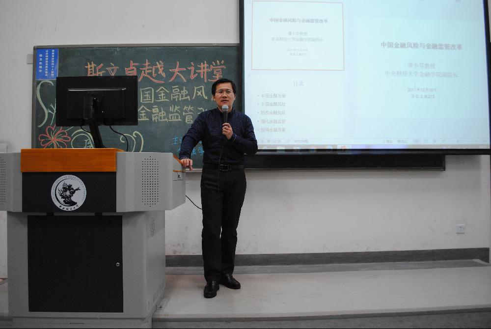 谭教授以简明语言描绘出金融行业的美好前景,鼓励同学们积极参与斯文卓越项目和对金融业的探索研究。本次斯文卓越大讲堂给同学们从金融风险防范与金融监管的角度解读了十九大报告,帮助同学们更好的理解当前的金融业发展形势与存在的金融风险,帮助同学们理解十九大精神指导下的金融监管举措,有助于提高同学们的学科素养,为其未来进一步发展打下牢固基础。