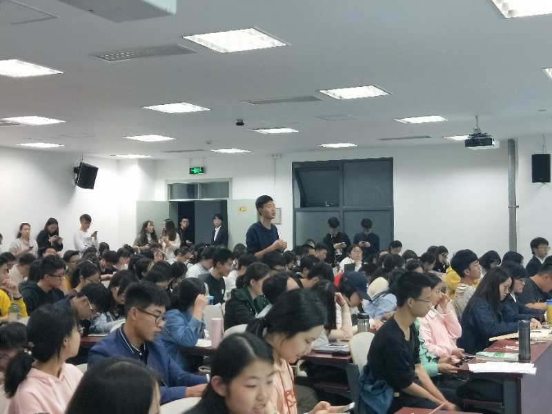 随着时间推移,宣讲会进入答疑环节——现场同学们针对宣讲过程中的疑惑提出问题并与投资分析人现场零距离交流。在金融投资方面有资深经验的朱泽俊老师也悉心为同学们的一一解答疑惑,加强了大家对于金融投资市场和期货股权的认识。