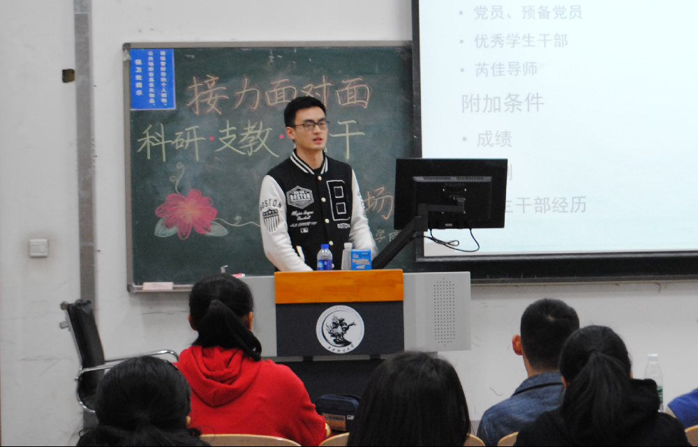 10月28日晚18:30,韦德1946体育官方入口员工会学习部于沙河校区东区主教105教室成功举办了接力面对面——科研支教优干保研经验分享会。本次宣讲会邀请到戴方贤,李子凡与汪凡智学长分别就科研保,支教保和优干保给同学们介绍具体内容及相关建议。
