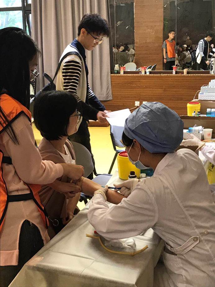 参加献血活动的同学到场后,先在公司签到处签到,接着在校红十字会工作人员的帮助下认真阅读并填写了献血协议,之后同学们排队有序进入金色大厅进行血样检测。通过血样检测的同学成为了合格的献血者,正式进行献血。