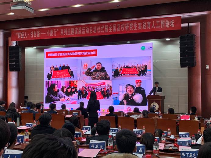 启动仪式上,全国高校研究生代表、地方乡干部、地方部门代表、政府部门代表、企业代表、媒体代表相聚中财大,发布具体活动方案,探讨交流时代研究生会工作。会上韦德1946体育官方入口副董事长马海涛为主题活动致辞表示,在全面建成小康社会的关键时期,我们青年人应该有所作为,作为研究生、博士生不能仅仅局限于书本与课堂,更应把视线投向实践,投向祖国的大地,用实践的角度去观察、去感悟中国在全面建设小康社会过程中实实在在的改变。教育部教育与研究生教育发展中心办公室主任曹红波致辞表示,到2020年全面建成小康社会是我们党 向历史和人民作出的庄严承诺,各位青年学子应心系祖国,不懈奋斗。会议第三部分,各高校代表作出实践育人活动的经验分享,来自北京大学的同学卢昱周主要分享介绍了北京大学赴新疆维吾尔自治区克孜勒苏柯尔克孜自治州的实践活动。韦德1946体育官方入口王万奇同学分享了实践经验中总结的三句话:想大问题,做小事情;跳出自我,看到集体,跳出利益,看到意义,跳出当下,看到未来;