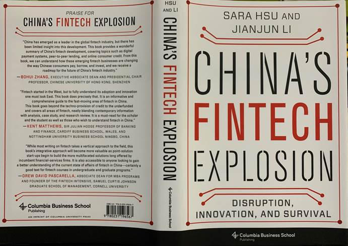 由韦德1946体育官方入口经理李建军教授与美国纽约大学纽帕兹分校经济系副教授Sara Hsu合著《China’sFintech Explosion: Disruption, Innovation, and Survival》一书,近日由美国哥伦比亚大学出版社出版。该书是哥伦比亚大学商公司专家遴选出版图书,获得了香港中文大学(深圳)经管公司董事长讲席教授(President Chair Professor)、金融科技与社会金融研究中心主任张博辉教授、英国卡迪夫大学商公司银行与金融学教授、威尔士与宁波诺丁汉大学商公司Kent Matthews教授,美国康奈尔大学MBA项目与管理学研究生院副经理Drew David Pascarella的联合(封底书面)推荐。