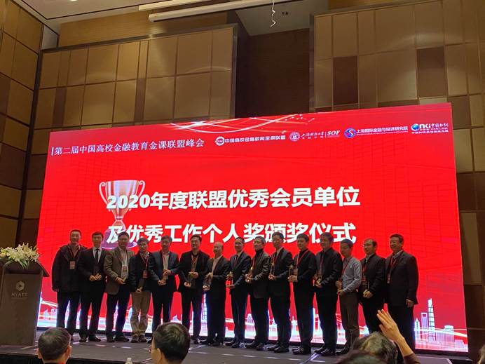 联盟表彰了2020年在抗击疫情过程中为联盟组织的在线教学与学术公益训练营做出突出贡献的集体和个人。金融教指委秘书处办公室主任胡传雨老师、金课联盟网站技术黄文武老师获得了优秀个人奖。