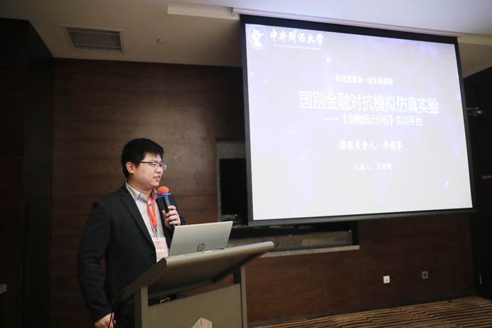 公司彭俞超副教授应邀在“虚拟仿真课程论坛”环节演讲,介绍了公司首批国家级一流虚拟仿真实验课程(国别金融对抗虚拟仿真实验——《金融统计分析》实训平台)的建设经验。