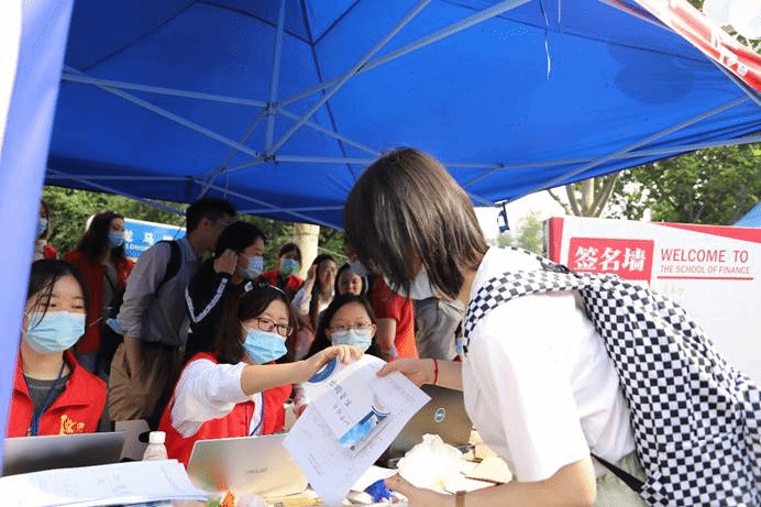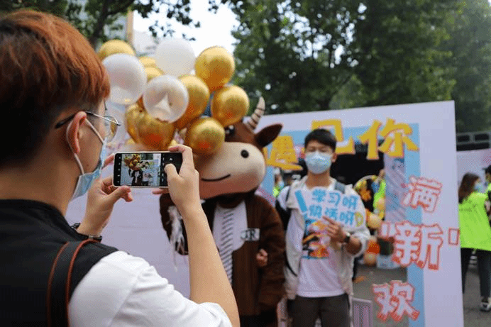 在老师们和志愿者们的带领下,新生们圆满地完成了一系列流程,小萌新们在签名板上签下名字并与金院吉祥物金小融合影留念,以容光焕发的精神面貌开启了人生的新篇章。