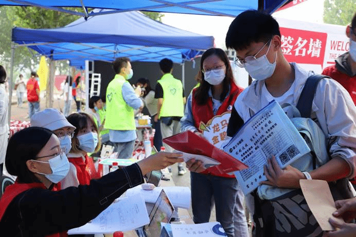 微风拂煦,新生陆陆续续前来报到。现场工作人员通过扫描录取通知书条形码帮助新生完成注册报到,同时把钥匙、员工证与员工卡再三确认无误后交递给新生。新生报道指南、入学手册、宿舍入住协议、爱心口罩则被悉数放入事先准备好的公司自主设计的纸袋中已提前由志愿者放入新生宿舍中。