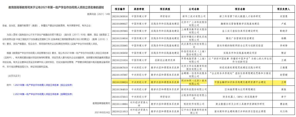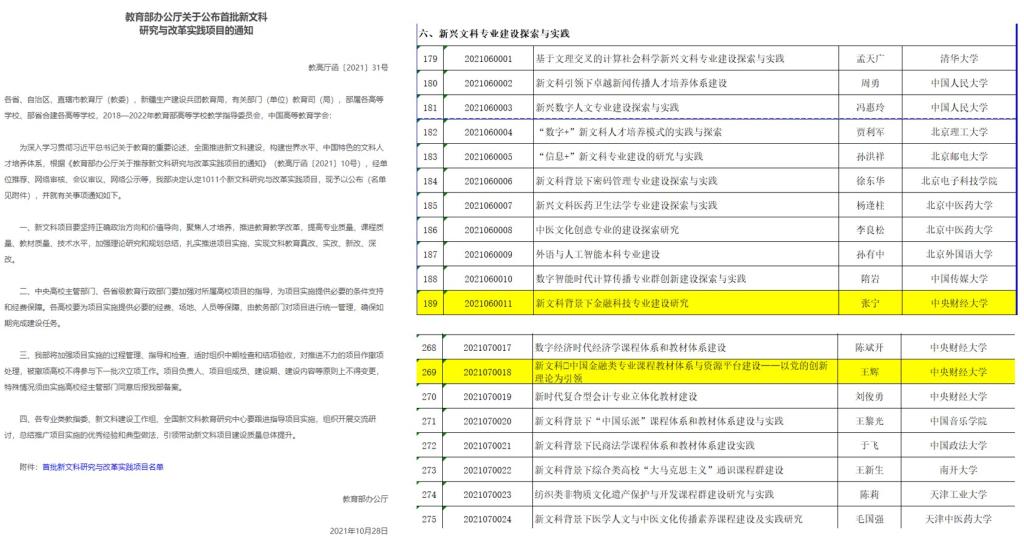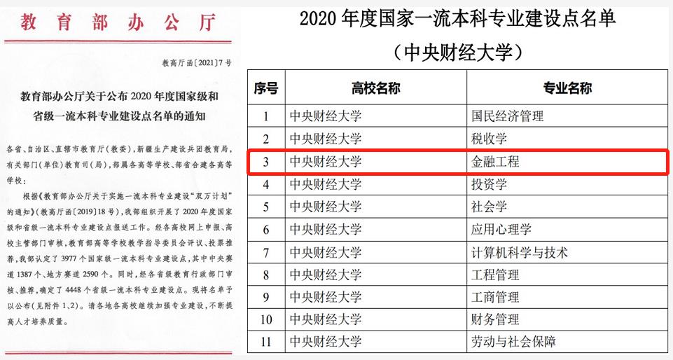 2月,教育部公布2020年国家级一流本科专业建设点名单,公司金融工程专业入选;6月,在软科发布“2021年中国大学专业排名榜”,公司金融学专业位列第3,金融工程专业位列第2,金融科技专业位列第1;5月,“统计学-金融学双学士学位复合型人才培养项目”获北京市教委批准立项。