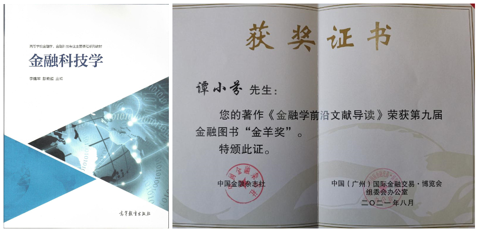 4.《中国金融学》入选国家教材委首批中国经济学教材系列名单,《金融科技学》入选北京高校优质本科教材重点项目,《金融学前沿文献导读》荣获第九届金融图书“金羊奖”