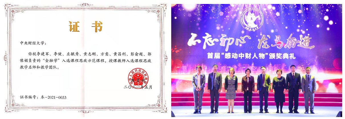 6.《金融学》获教育部首批课程思政国家示范课程,团队被授予课程思政教学名师与团队;《金融学》MOOC获评首届“感动中财”人物