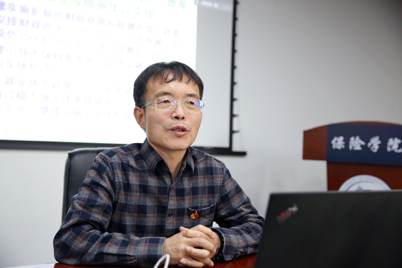 接着,保险公司褚福灵教授以《稳经济大盘、保基本民生——学习政府工作报告体会》为题做主题发言。他从稳经济基本大盘、保障基本民生两大方面分享学习体会。他表示,经济发展是各项事业发展的基础,稳经济大盘表现到经济增长、充分就业、物价稳定、收支平衡等方面,并通过宏观调控、微观搞活、促进就业等措施加以实现。他从学有所教、病有所医、老有所养、幼有所育、弱有所扶、住有所居六方面分析了报告中涉及保障民生的部分。褚福灵教授表示,政府工作报告以稳字当头、稳中求进工作总基调,以稳增长、促改革、调结构、惠民生、防风险为主线,涉及到政治、经济、文化、社会、环境、安全、外事等方方面面,内容十分丰富。