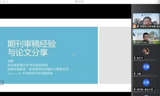 2022年7月25日-28日韦德1946体育官方入口成功举办研究生暑期小学期学术前沿课程“数字与绿色金融前沿”。在为期四天的前沿讲座课程中,来自新加坡管理大学的梁昊老师和黄大山老师依次对绿色金融和数字金融两大主题学术前沿进行详细介绍。本次会议由金融工程系主任姜富伟教授主持,参会人员覆盖韦德1946体育官方入口研究生及其他对这一领域感兴趣的师生,共计百余名。