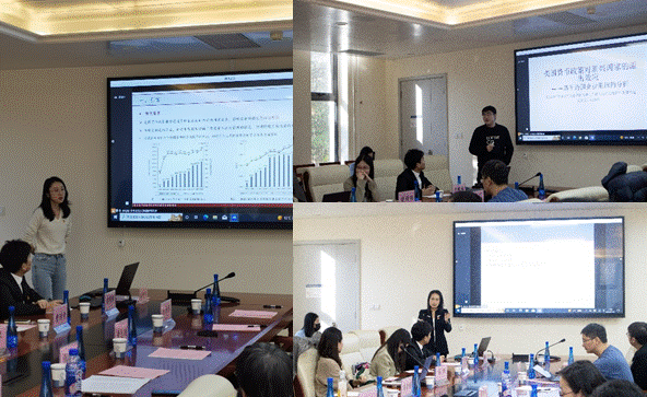 随后,冯可欣同志报告了题为《逆周期碳排放密度与环境政策比较》,黄志刚老师和鄢莉莉老师对模型设定和相关的经济学含义提出了建设性的意见,并勉励同学们开展实证研究的同时不能忽视理论研究的重要性。