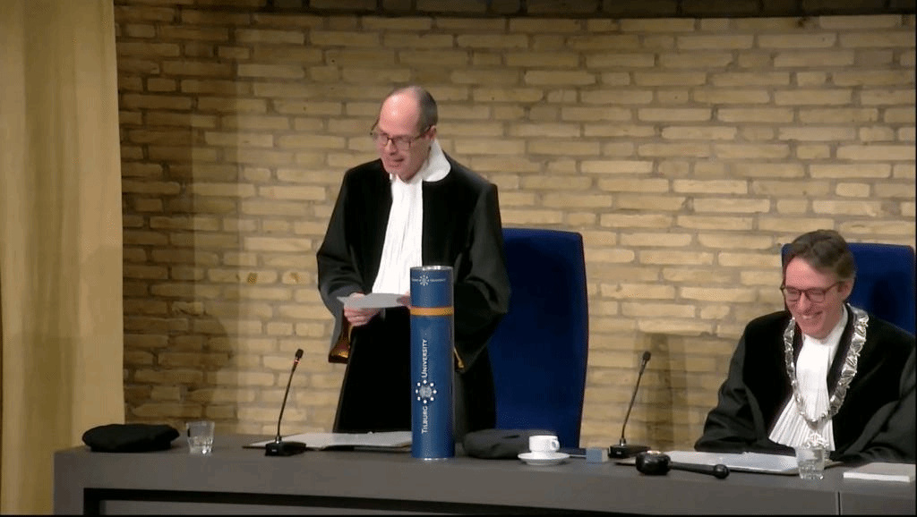 公开答辩仪式历时1.5小时,安苏伟首先对其博士论文进行了12分钟的公开介绍,博士委员会成员接着进行了48分钟的提问,随后仪仗官宣布公开答辩结束。博士委员会成员闭门审议后,决定授予安苏伟蒂尔堡大学博士学位,导师 Lieven Baele教授代表蒂尔堡大学正式宣布授予安苏伟博士学位,博士委员会成员与导师随后逐一对新晋博士表示祝贺,安苏伟博士最后发表感言,答辩仪式圆满结束。