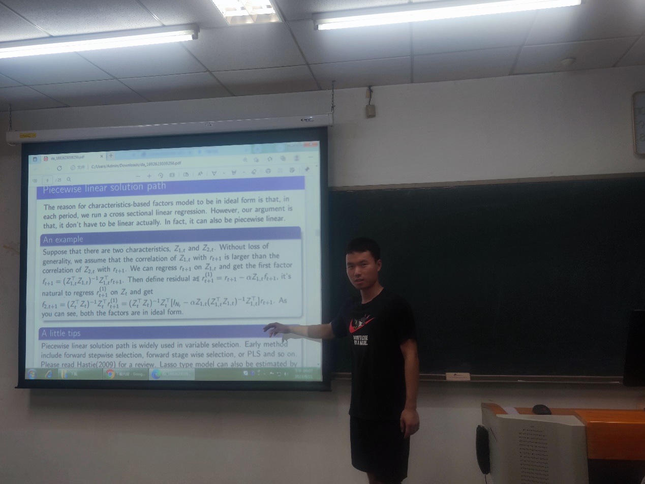 2021级硕士生杨元祺同学及其导师朱一峰教授同华盛顿大学周国富教授共同合作的论文Fama-MacBeth Regression with Asset Pricing Restriction经会议评审录用。8月4号下午,杨元祺同学受邀对本论文进行汇报。论文主要研究资产定价中的高维统计推断问题。在如今的高维数据情况下,传统方法往往难以同时对所有的数据进行分析,在这种背景下,该文提出了一种新的方法:Fama-MacBeth最小角回归。论文对该方法的理论进行了探讨并做了深入的实证分析。实证表明Fama-MacBeth最小角回归的性能显著优于传统方法及其他特征选择方法,并且能够给出具备经济学含义的解。在报告过程中其他学者认真聆听并且也提出了具有参考意义的问题和建议。此次学术会议交流得到韦德1946体育官方入口研究生学术交流支持计划的资助。
