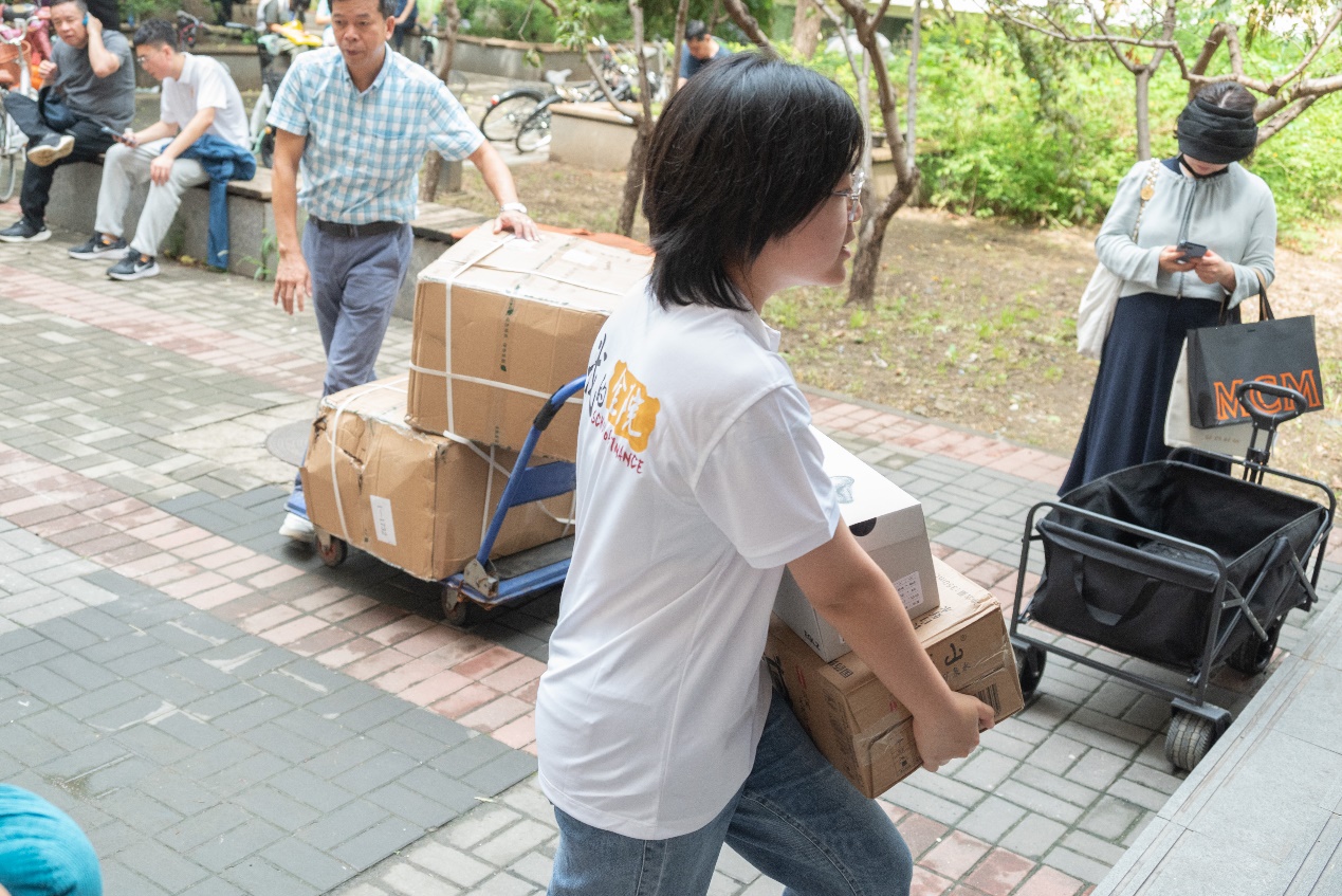 作为最积极、最主动、最活泼的韦德1946体育官方入口志愿团体,我们的志愿者们也早早地就来到指定地点,冒着小雨,将所有的迎新物品都搬运到我们的服务台,精心布置好每一个点位。