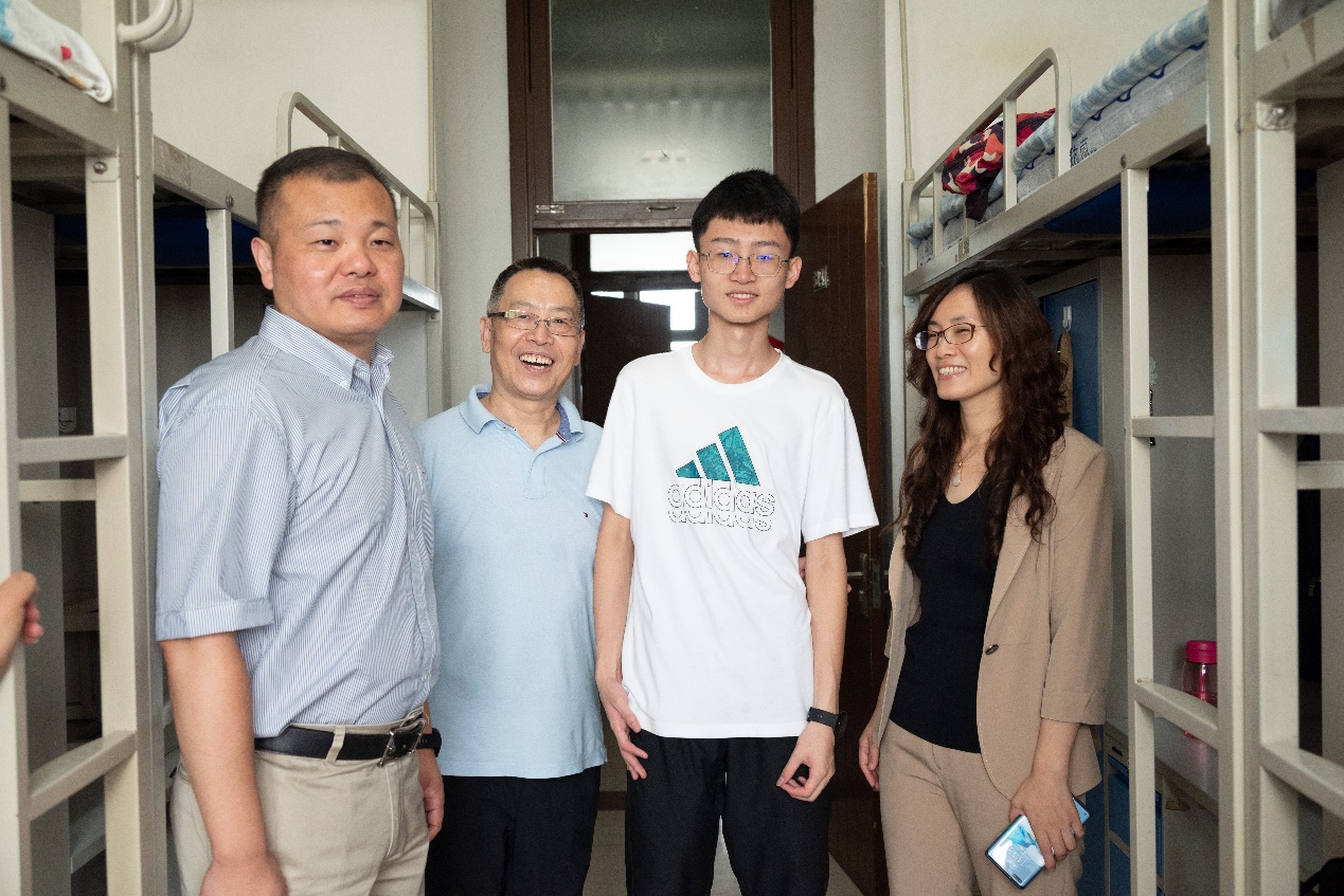 随后,王辉书记、张学勇经理、徐振东副书记、新生辅导员马露老师一行来到了新生宿舍走访慰问,与新生和家长亲切交流,询问新生入住感受,解答家长疑问,积极解决诉求。