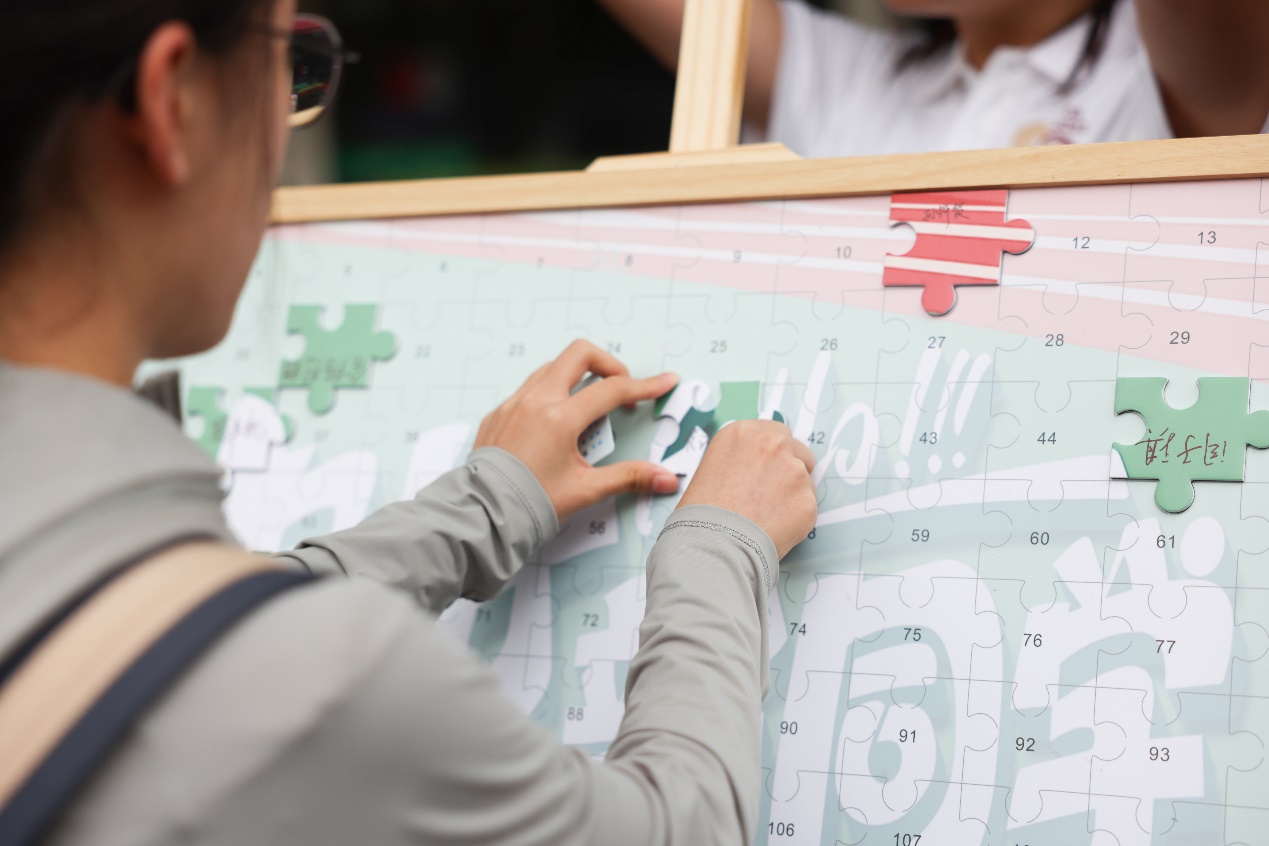 公司今年为新同学准备了很多别具一格、创意十足的欢迎环节,新同学签有自己名字的专属拼图,最终拼凑成了“欢迎新同学”的韦德1946体育官方入口迎新图片。一个拼图一种身份,从此“金融人”的烙印深深的刻入了每一个2023级金院新生的心中。