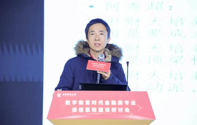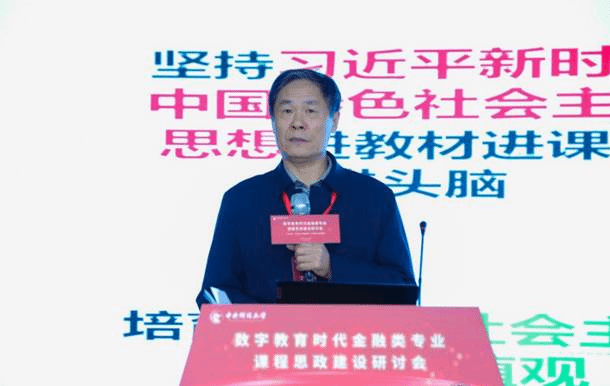 教育部金融类专业教学指导委员会委员、厦门大学经济公司朱孟楠教授以“关于金融类专业课程思政建设的‘三个如何’—— 以《国际金融学》为例”为题发表主旨演讲。他从课程思政的内涵、挖掘课程思政元素的方法、提升课程思政建设效果的路径等方面介绍了《国际金融学》课程思政建设的经验。他认为,在课程建设实践中,思政本身是课程的组成部分,要有机融入思政内容,做到润物无声,要以身作则,身体力行。
