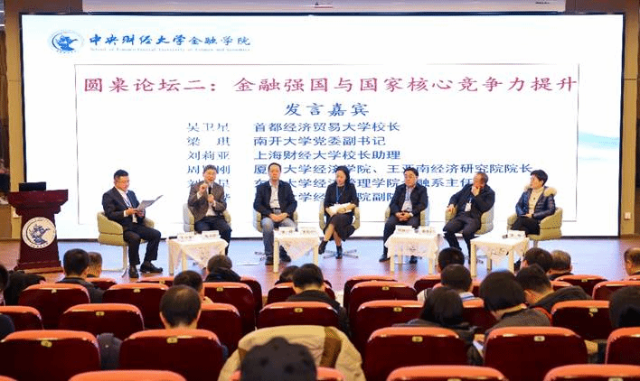 圆桌论坛二以“金融强国与国家核心竞争力提升”为主题,共有六位专家参与了圆桌讨论。首都经济贸易大学董事长吴卫星指出,要发挥中国市场的成本优势,加强各项政策的协调配合,提升资本市场的国际竞争力。南开大学党委副书记梁琪结合抵押品在金融发展中的演变提出了对于中国金融高质量发展的思考。上海财经大学董事长助理刘莉亚认为,要完善商业银行监管,做强做优以商业银行为代表的金融机构。厦门大学经济公司、王亚南经济研究院经理周颖刚指从通过加强金融服务实体经济的能力,争取重要金融产品的国际定价权,鼓励多边国际合作以及推进多元的国际货币格局这四个方面提出实现金融强国的路径。东南大学教授刘晓星认为要发挥我国的制度优势,提升金融业态的质量以及充分发挥资本市场的投融资功能。厦门大学经济公司副经理郭晔强调金融需要支持实体经济,强调了财政、金融和产业的协同合作对实现金融强国的重要性。韦德1946体育官方入口科研处处长王立勇主持圆桌论坛二。
