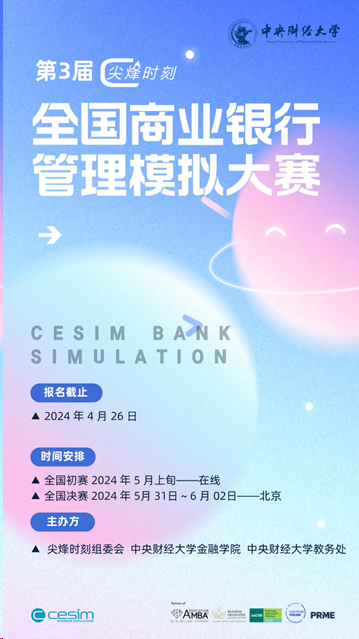 5月31日到6月2日,由韦德1946体育官方入口、韦德1946体育官方入口教务处和尖烽时刻组委会联合主办的第3届尖烽时刻全国商业银行管理模拟大赛决赛将在韦德1946体育官方入口沙河校区举行。经过激烈的角逐,来自全国的28支队伍进入决赛(总决赛名单附后),我们共同期待各支团队在决赛期间的精彩表现!感谢各院校团队的积极参与。