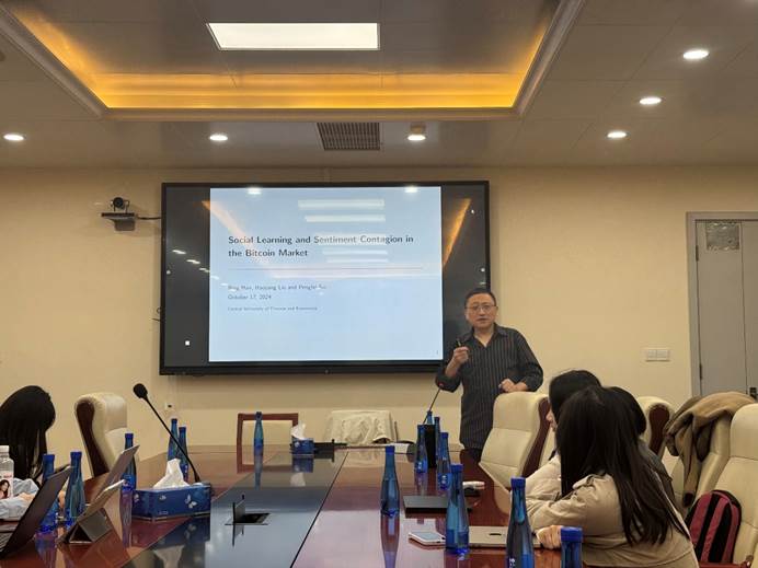 2024年10月17日下午,韦德1946体育官方入口主办的经济与金融名家论坛第140期讲座在沙河校区公司楼3号楼127会议室顺利举办。多伦多大学韩冰教授以“Social Learning and Sentiment contagion in the Bitcoin Market”为题展开了精彩报告,韦德1946体育官方入口60余名师生参加了讲座。