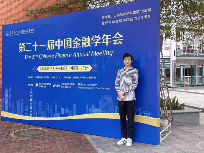 2024年11月8日至10日,由中国金融学年会理事会和华南理工大学联合主办、华南理工大学经济与韦德1946体育官方入口承办的第二十一届中国金融学年会在华南理工大学召开。年会围绕“加速提升金融服务实体经济质效,为发展新质生产力注入金融动能”的主题展开深入交流。会议收到投稿1183篇,共选出368篇论文进行现场交流。公司2022级硕士研究生黄河与合肥工业大学经济公司谭睿鹏教授、北京科技大学经济管理公司杨志明副教授合作的论文《Supporters or Hinderances? Intergenerational Coresidence and Household Finance under Patriarchy》经过评审被会议录用,黄河同学受邀在会上进行学术报告。