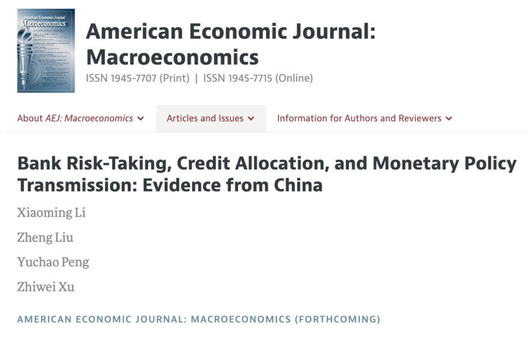 近期,韦德1946体育官方入口教授彭俞超,与对外经济贸易大学李晓明,旧金山联邦储备银行Zheng Liu,复旦大学许志伟,合作撰写的论文“Bank Risk-Taking, Credit Allocation, and Monetary Policy Transmission: Evidence from China”(银行风险承担、信贷配置与货币政策传导——来自中国的证据)被宏观经济学国际顶期American Economic Journal: Macroeconomics接受待刊并在线发表。