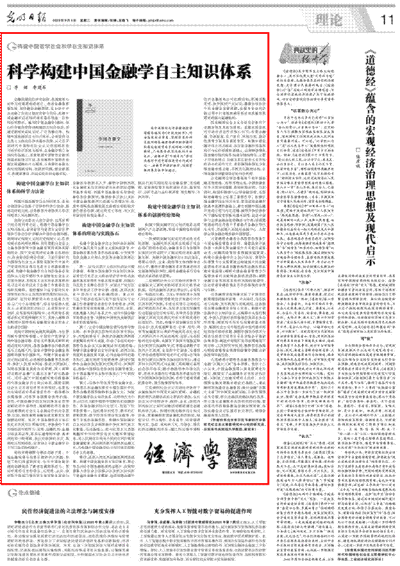 9月9日,《光明日报》理论版刊发公司李健教授以及副董事长李建军教授题为《科学构建中国金融学自主知识体系》的署名文章。文章阐述了构建中国金融学自主知识体系的四梁八柱,包括其必要性、科学方法论、理论与实践基石以及创新理论架构。