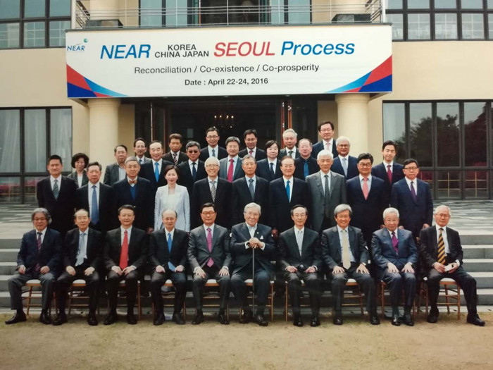 “NEAR韩中日首尔进程(2016)会议”是由韩国原财政部长、东北亚研究基金会主席、著名学者郑德龟先生发起的年度学术会议机制。其宗旨是通过汇集中韩日三国在历史、政治、安全和经济等领域的知名学者(共计36人,每个国家12人),定期交流,集思广益,为实现这一地区的相互信任、和平和繁荣而提供智力支持。本次会议属于启动会议,具有开创性。现任韩国外交部长尹炳世、前韩国总理李宏久、前韩国外交部长韩升洙、前韩国商务部长朴泰镐、前联合国副秘书长明石康、日本著名经济学家神原英姿等韩日政界和学界人士,以及中国政协常委及北京大学国际关系公司经理贾庆国教授、中国(海南)改革与发展研究院经理迟福林教授、中国国务院参事时殷红教授参加了本次会议。