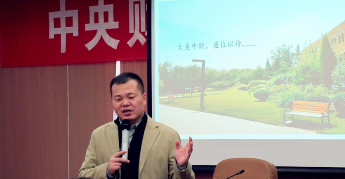 最后,学员代表郭大公简洁地为大家分享了自己选择中财以及在中财学习的心路历程。他表示自己从事金融行业的工作,深感知识水平提升与结构优化的必要性和紧迫性。他也提到了在职学习可能比较辛苦,但他用一句通俗的话表明了自己的态度,“上课时需要早起,但早上叫我起来的不是我妈,是我对知识的渴求”。他谈到中财在金融领域的影响力是有目共睹的,同时也分享了自己课堂上所学的内容,在短短的几个月的学习中,收获不少。