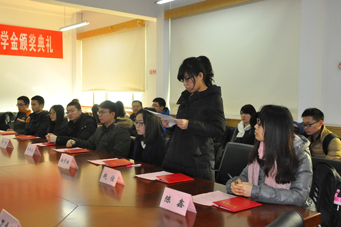 12月30日,2013-2014学年融信奖学金颁奖典礼在主教楼913会议室举行。融通汇信投资管理有限公司总裁李天鹏、市场部总监吴倩然、市场部何研、韦德1946体育官方入口副经理李建军、研究生导师兼班主任李俊峰、聂丽君、研究生办公室邹晓琳等教师,以及融信奖学金获奖同学、到场观众参加了颁奖典礼。典礼由研究生办公室罗卓笔老师主持。