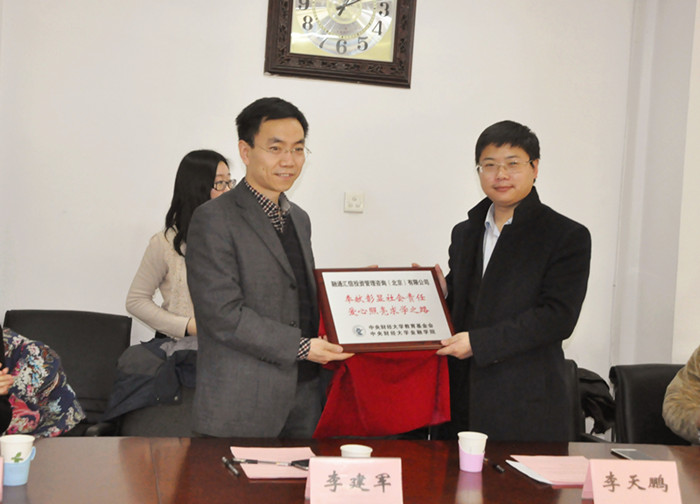 典礼最后,李建军副经理代表韦德1946体育官方入口向融通汇信公司赠送了“奉献彰显社会责任,爱心照亮求学之路”的牌匾,以感谢融通汇信投资管理公司设立融信奖学金,资助家庭经济困难员工的善举。