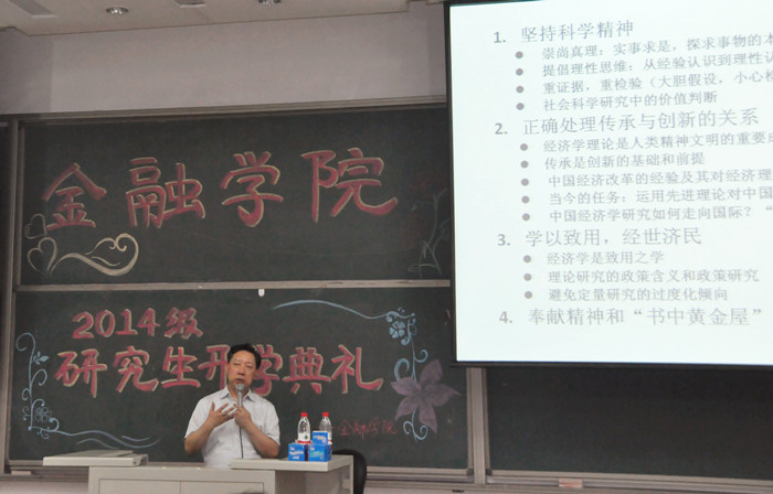 开学典礼之后,张礼卿经理做了题为“治学的精神和方法”的学术讲座。张经理详细介绍了金融研究的基本过程、研究方法、文献阅读和综述撰写,着重讲述了阅读文献的方法和重点,并向同学们强调了写作的学术规范性,提醒同学们坚持科学精神,端正学术态度,树立优良的学风,掌握正确的研究方法,培养自学能力。