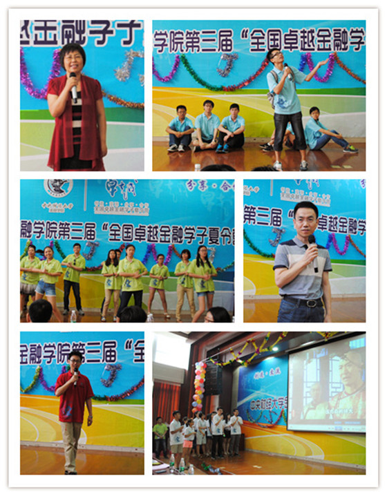温馨的歌曲串烧《我与中财的日子》用歌声回望了五天的时光与美好,改编的诗歌朗诵《再别央财》用各地方言表达了对中财的不舍和留恋;舞台剧《江湖崛起之四大门派》戏说金融学科和经济知识,配音《来自星星的梦想》改编影片台词、笑说缤纷梦想……还有抒情的独唱《原来你也在这里》、优雅的舞蹈《咏春》、热情洋溢的健美操《舞动青春》、趣味横生的单口相声《慈禧进宫》等等。多才多艺的营员们以各种形式的节目表达了自己对中财的热爱、对离别的不舍和对未来的憧憬。