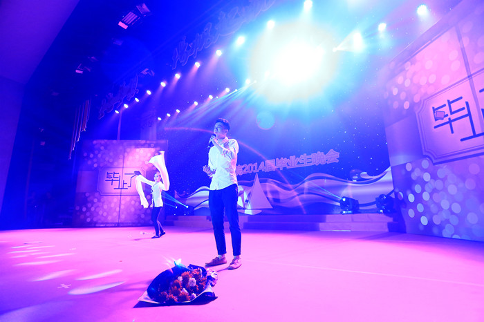 伴随着12级和13级的同学们精心排练的开场舞《篆音挽离歌》,2014届毕业生晚会正式拉开了序幕。精湛的舞技,优雅的舞姿,展现了金融学子的青春活力的艺术,表现出学弟学妹们对即将毕业的学姐学长们的衷心祝福。