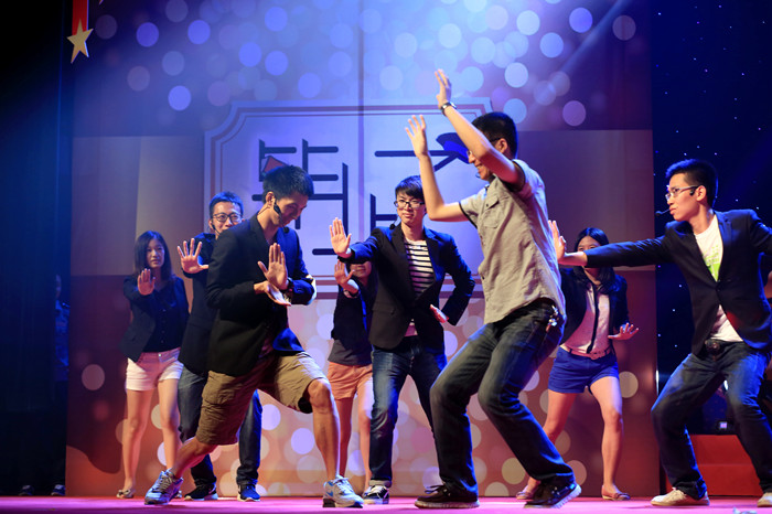 10级金融1班的节目《来自土星的你》率先引发了晚会的第一次高潮,带动了全场的气氛。他们的话剧来源于热播韩剧《来自星星的你》,结合老员工活时的校园故事,让观众朋友们在快乐的气氛中仿佛看到自己大学影子。