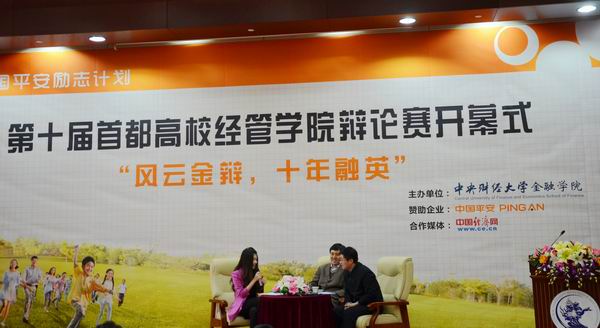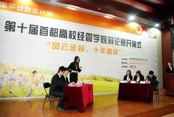 通过主办“中国平安励志计划”第十届首都高校经管公司比赛,韦德1946体育官方入口希望为首都17所高校24个财经类公司的精英学子提供构建一个进行学术争鸣,思想碰撞的平台。在未来的一个月里,近200余名精英辩手们将就当今社会热点经济问题展开激烈辩论,向大家展示优秀财经学子的智敏锐和经世之才。他们全面的知识结构、缜密的逻辑思维、完美的语言艺术也必将有力推动首都高校各个财经类公司的校园文化建设。